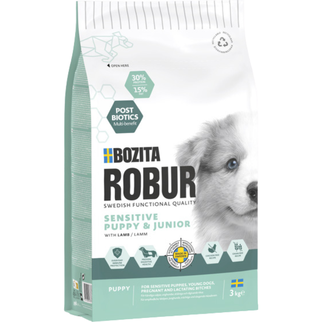 Bozita Robur er korn- og kjúklingalaust þurrfóður með lambakjöti fyrir hvolpa, unga hunda, og tíkur sem eru hvolpafullar eða með hvolpa á spena. Fóðrið er ætlað fyrir hunda af meðalstórum- og stærri tegundum.