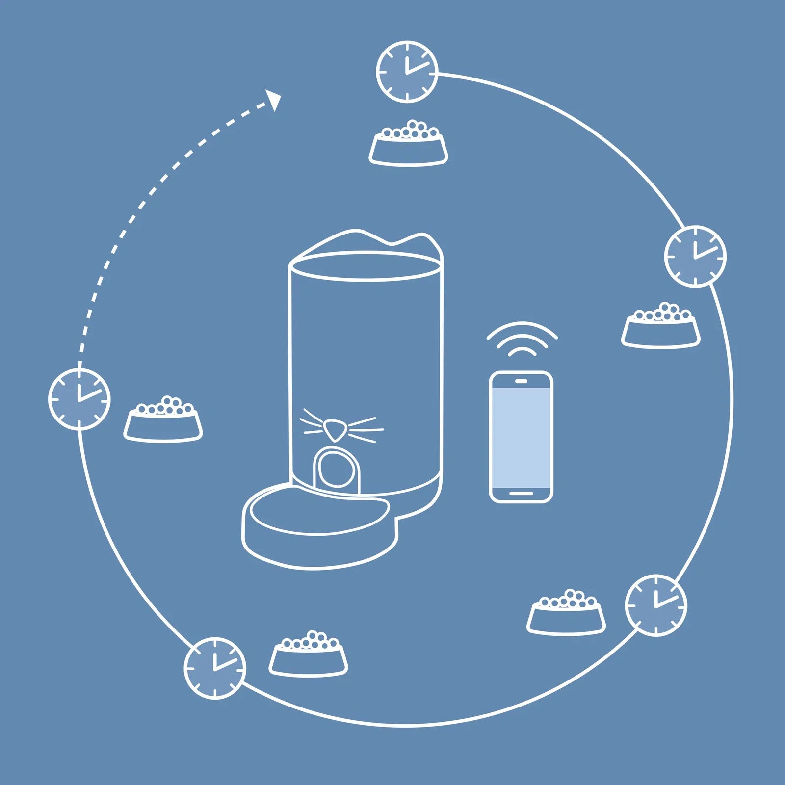 Snjallfóðrun fyrir köttinn þinn – Wi-Fi, app-stýring og allt að 12 matar­skammtar á dag.