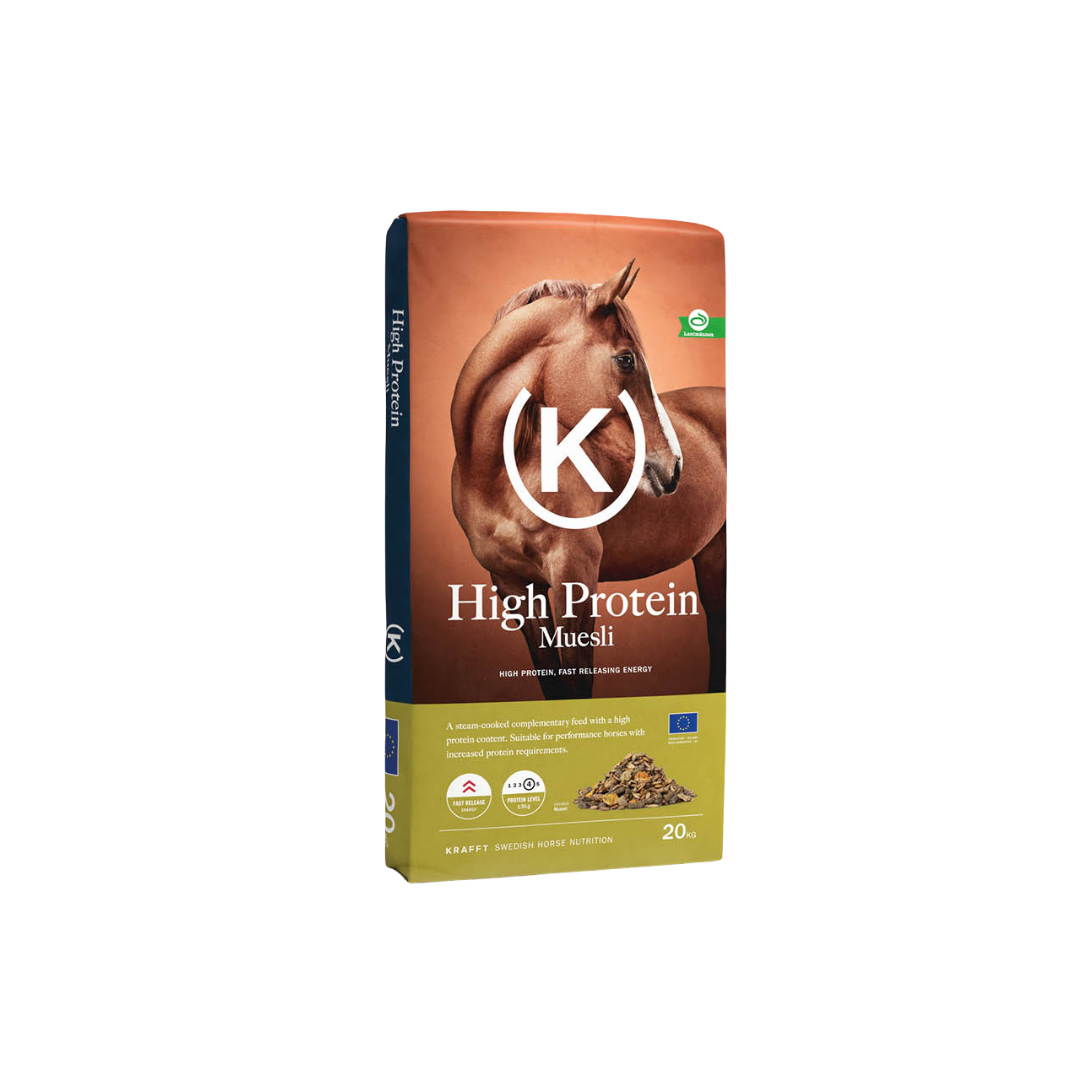 A protein-rich, steamed muesli. The high protein level in High Protein Muesli makes it suitable for all types of horses that need a higher protein mix.