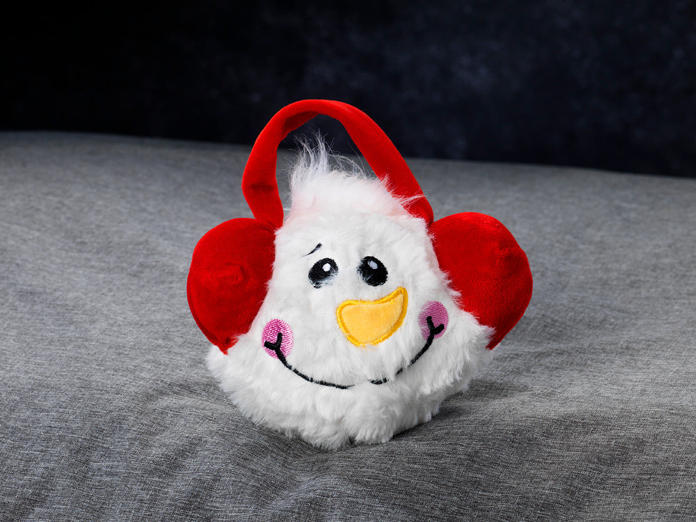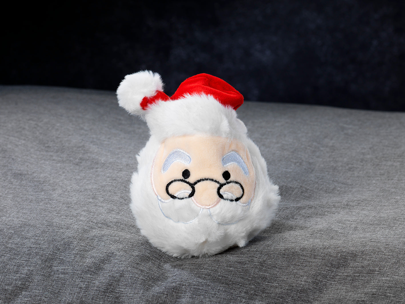 Ofursætur og mjúkur bolti sem líkist annaðhvort jólasveini eða snjókalli.