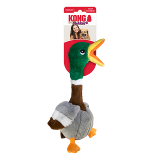 KONG Shakers Honkers öndin leyfir skemmtuninni að njóta sín. Leikfangið er með innri hálsi sem er með áferð sem fullnægir náttúrulegri nagþörf hundsins, á meðan langir, sveigjanlegir fætur kveikja á skemmtilegum tog og hristi leikjum.