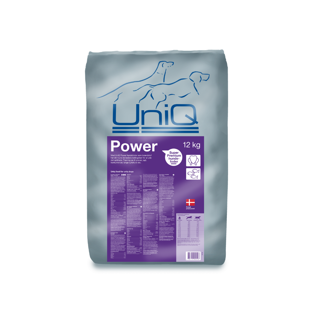 UniQ Power er heilfóður sem hefur mjög hátt orkuinnihald. Það er sérstaklega hannað fyrir hunda sem eru í krefjandi aðstæðum og þurfa mikla orku eins og t.d vinnu- og veiðiþjálfun, veiðiferðir, langir hjólreiðatúrar, keppnir, björgunarleiðangrar og annað slíkt.