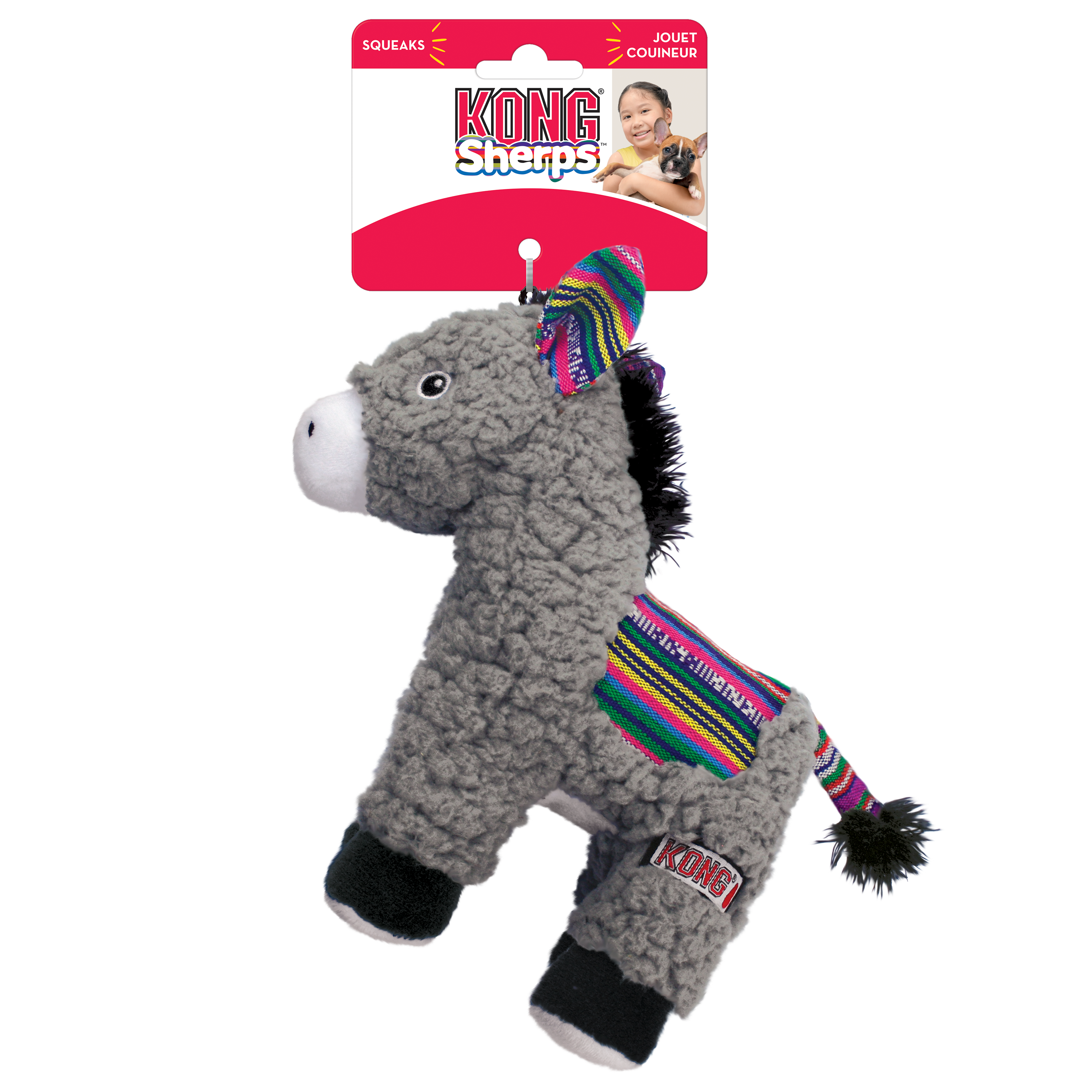 KONG Sherps Asninn er úr ómótstæðilega mjúku efni sem gott er að knúsa og kúra með - nauðsynlegt eftir skemmtilegan leik.
